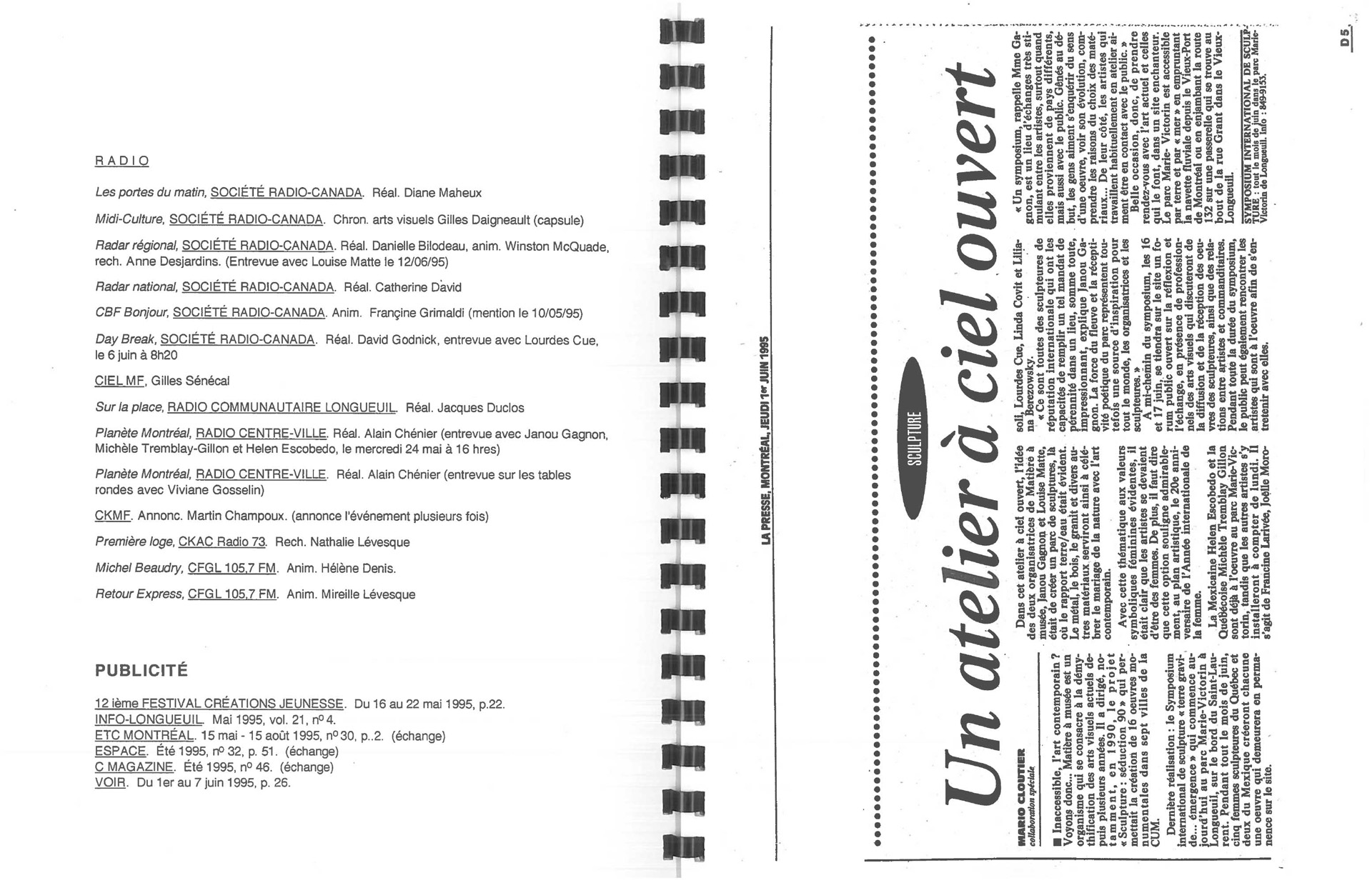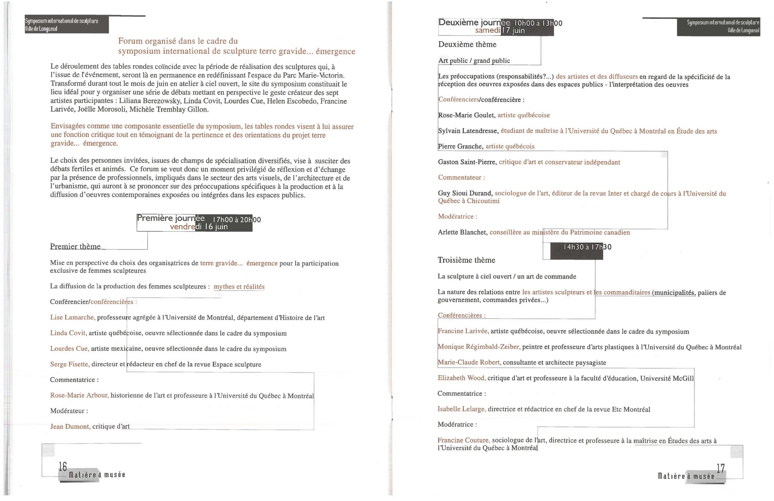 Symposium international de sculpture Terre gravide…émergence Visionner Symposium Terre gravide Catalogue Revue de Presse